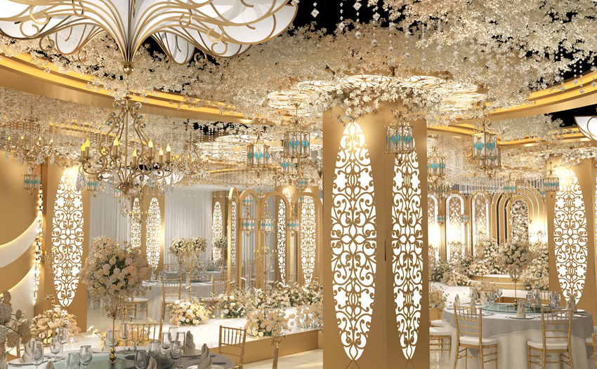 空间布局:考虑婚礼堂的用途,设定空间布局。婚礼堂通常包括仪式区,接待区,餐饮区等。要确保所有区域都足够宽敞,且能够顺利地进行各项活动。
