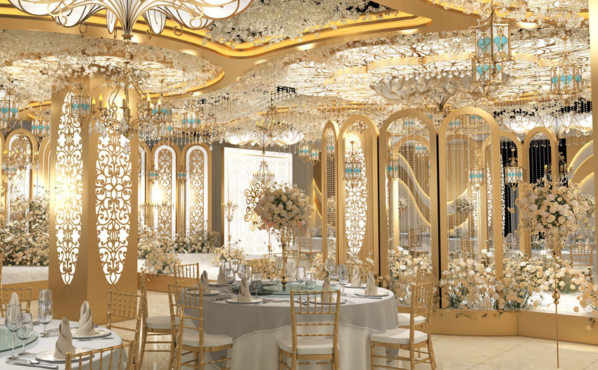 来源:乐至婚礼堂设计 乐至宴会厅设计 发布时间:2026-04-15 112232 次浏览